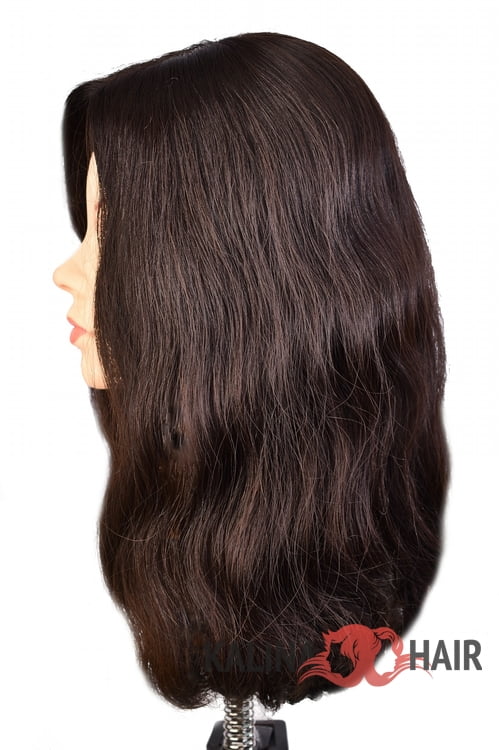 Стрижка парика выполнена классическим прямым срезом. Прямой пробор посередине выглядит натурально и подходит любому типу лица. Волосы имеют легкую волну, благодаря чему парик не нуждается в дополнительной укладке. При желании с помощью утюжка, плойки или стайлера можно волосы выпрямить, завить или уложить привычным способом.